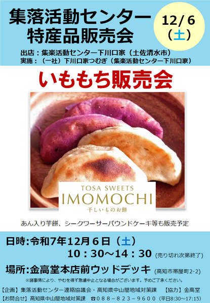 - 【12/6(土)帯屋町・金高堂前】集楽活動センター下川口家(土佐清水市)の特産品を販売!