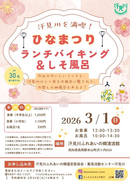 - 【3/1(日)開催】ひなまつりランチバイキング&しそ風呂のイベント予約受付中!