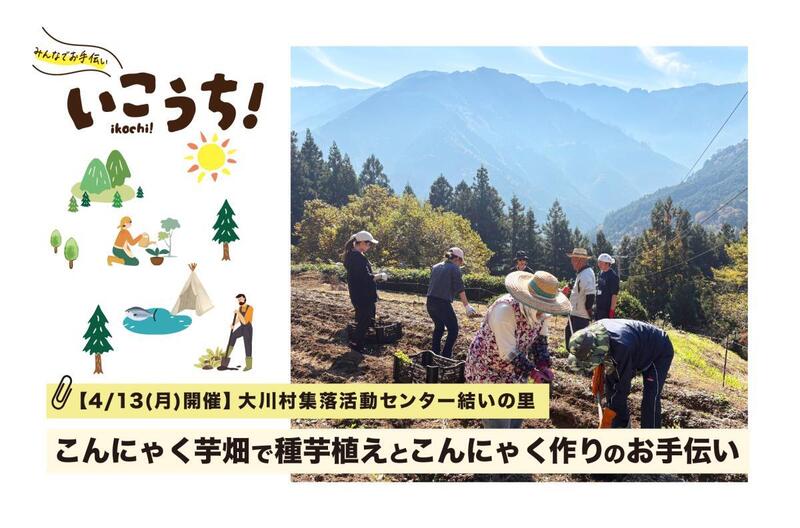 - 【4/13(月)大川村開催】こんにゃく芋畑で種芋植えとこんにゃく作りのお手伝い募集!