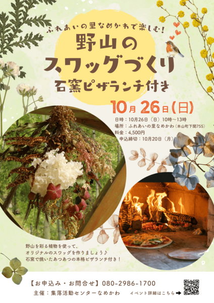 - 野山のスワッグづくり・石窯ピザランチ付き\参加者募集中/