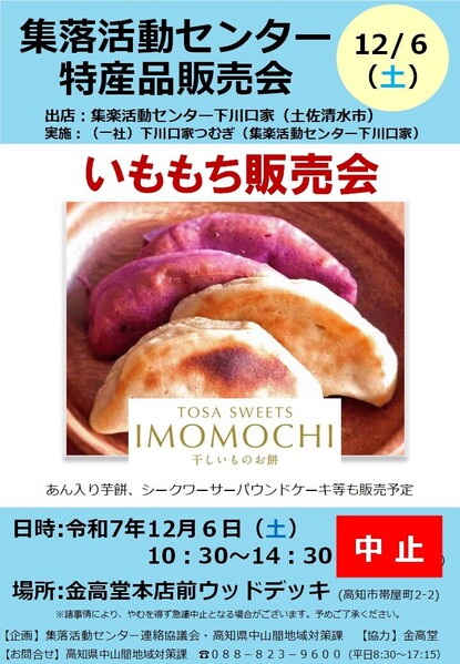 - 【12/7(日)帯屋町・金高堂前】集落活動センター美良布(香美市)の特産品を販売!