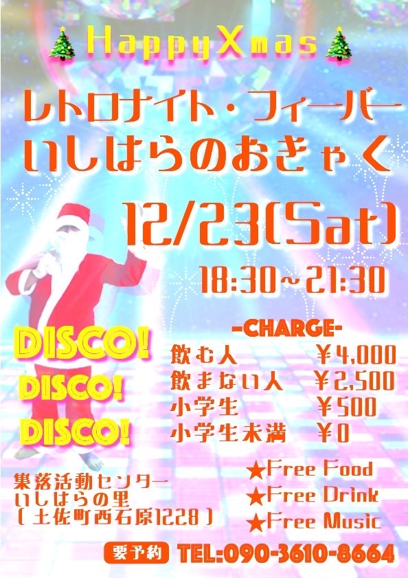 12/23(土)レトロナイト・フィーバーいしはらのおきゃく🕺開催🎄いしはらの里(土佐町)