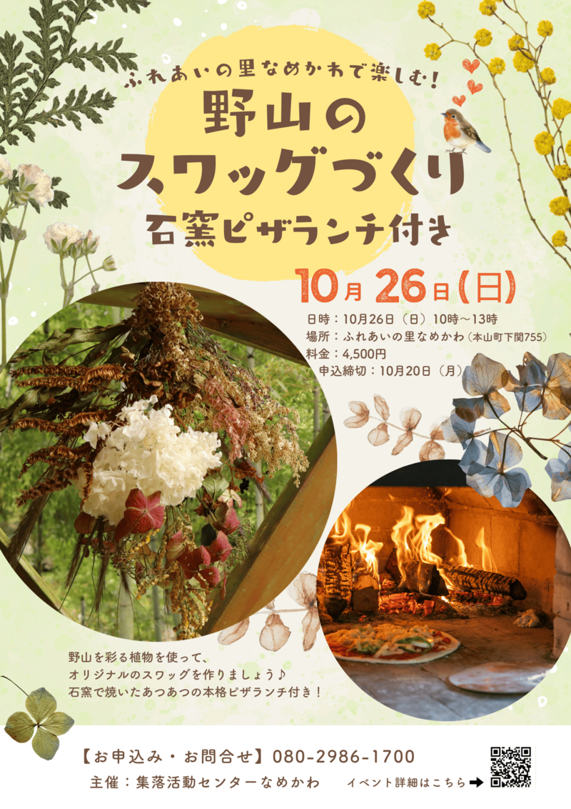 HOME > 野山のスワッグづくり・石窯ピザランチ付き\参加者募集中/